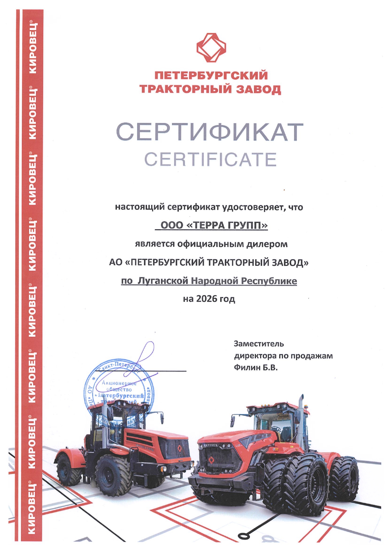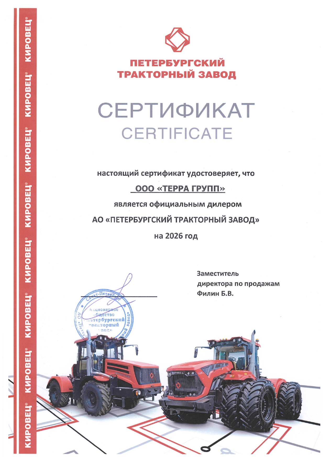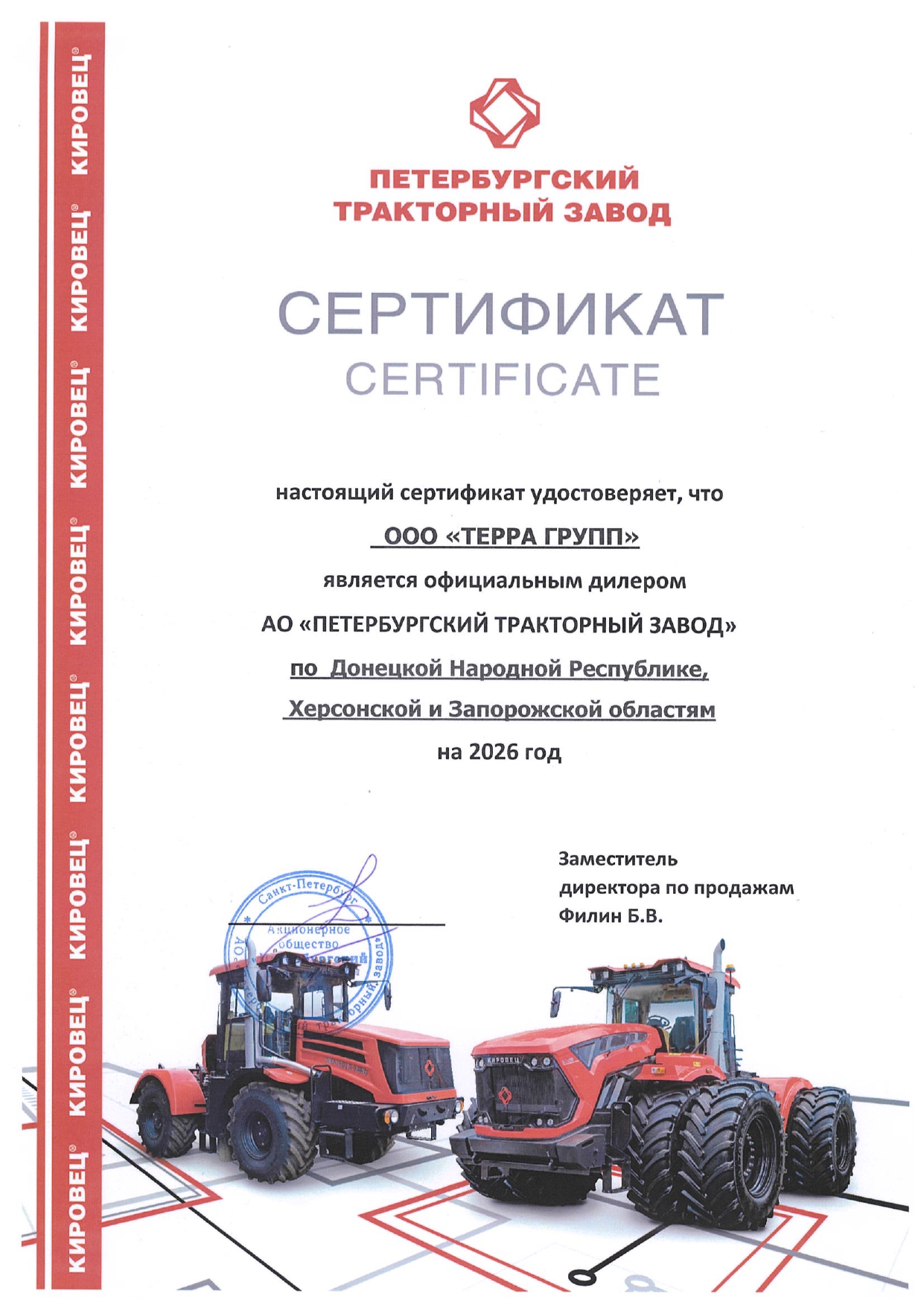 На сегодня «Терра Групп» является официальным дилером ведущих мировых производителей агротехники: